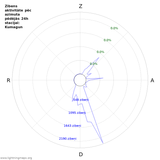 Lokalizācijas attiecība dažādos virzienos. Labākai salīdzināšanai tiek attēlotas arī visas zibens izlādes.