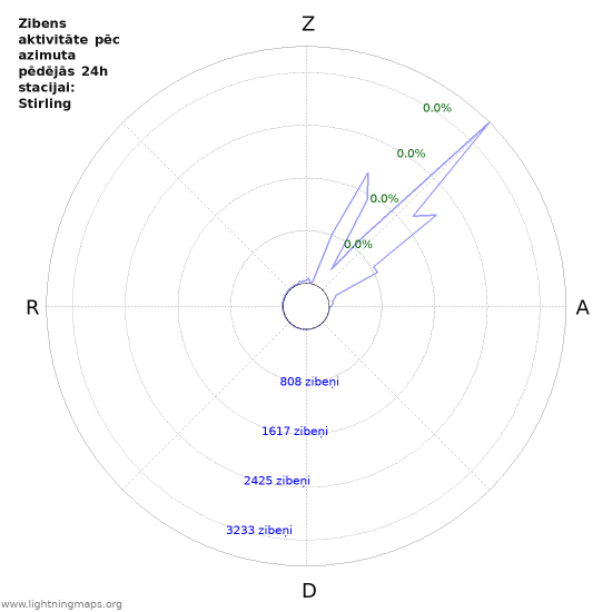 Lokalizācijas attiecība dažādos virzienos. Labākai salīdzināšanai tiek attēlotas arī visas zibens izlādes.