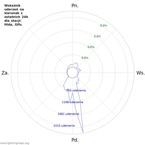 Tutaj można zmobaczyć całkowitą liczbę uderzeń na godzinę wykrytą przez sieć detektorów, liczbę wykrytych uderzeń/h stacji Hida, Gifu i śrenią liczbę uderzeń dla wszytkich stacji