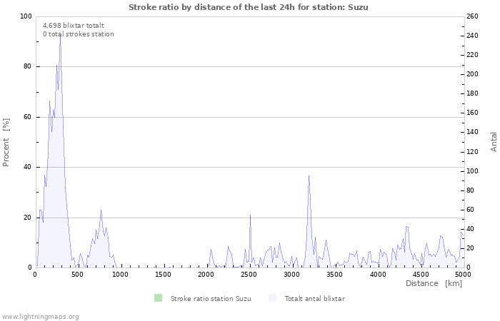 Overview about the own locating ratio over distance from stations. Whole stroke count over distance is also visible.