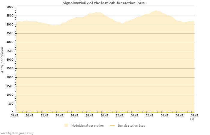 The count of received signals per hour of the station Suzu and also mean value of all stations.