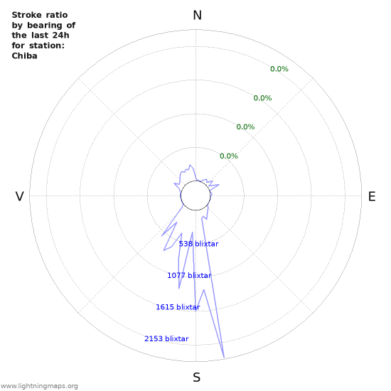 Here you can see the whole stroke count per hours detected by the lightning network, the count of detected strokes/h of the station Chiba and the mean stroke count for all stations
