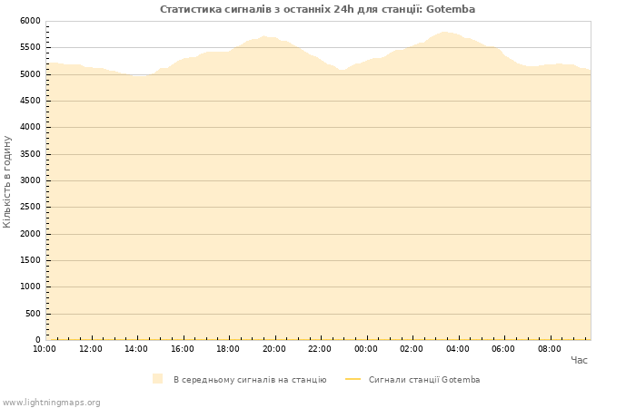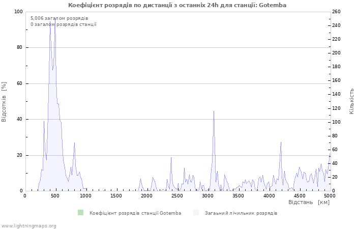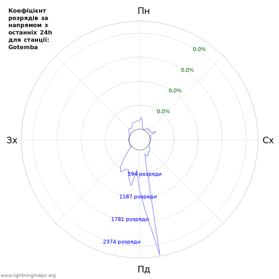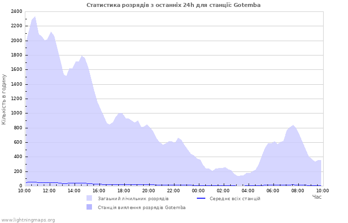 Тут ви можете побачити загалну кількість розрядів за кілька годин виявлених у мережі блискавок, кількість виявлених розрядів на годину станції Gotemba і середня кількість розрядів для всіх станцій
